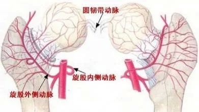 本身的血供如上图所示,是由较粗的动脉的分支及其末梢来供血的,他们在股骨颈基底部形成一个供血动脉环,而在头部主要依靠这个环发出的细小分支来营养,类似于心脏的冠状动脉,一旦其中形成堵塞,就会直接导致供血支配区的缺血坏死。大量饮酒后,酒精代谢主要在肝脏进行,使脂肪在肝内出现堆积,形成脂肪肝,不断放出脂肪栓子进入血液,脂肪栓子滞留于终末的小血管及软骨下血管床内,引起软骨缺血而坏死;同时酒精代谢过程中产生乙醛等脂质过氧化物,从而引起血管内皮的进一步损伤,形成微小的栓子堵塞血管;加之酒精及其代谢产物的直接细胞毒性作用,饮酒还可造成维生素D代谢紊乱,骨细胞代谢降低,成骨能力减低,发生骨质疏松,导致局部受力面积减少而产生高应力的成骨反应,骨细胞破坏,软骨下出现微小骨折,引起局部骨内压升高和出血,导致骨坏死。这一系列的变化导致股骨头得不到充足的营养供应,在负重下出现的慢性损伤不能及时修复,日积月累逐渐出现股骨头坏死塌陷变形。